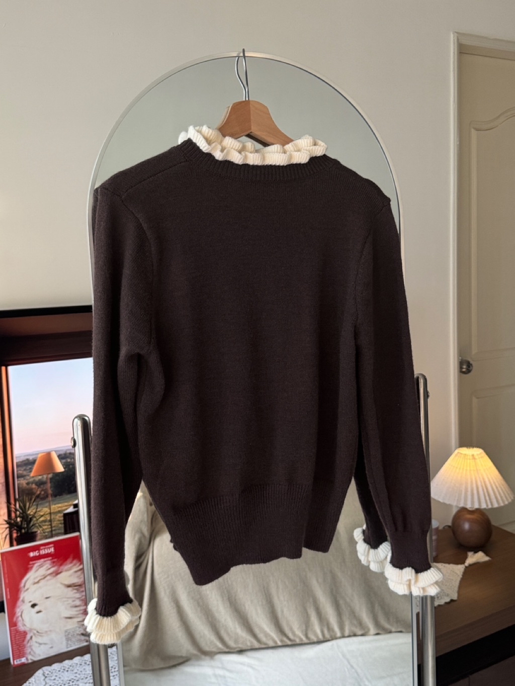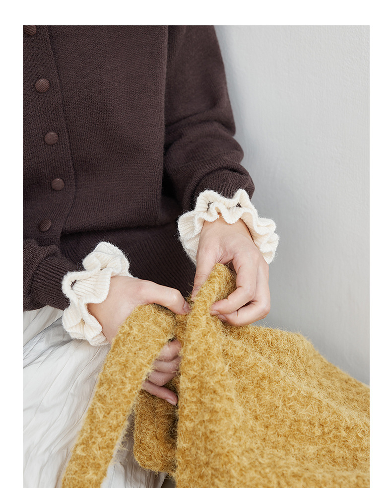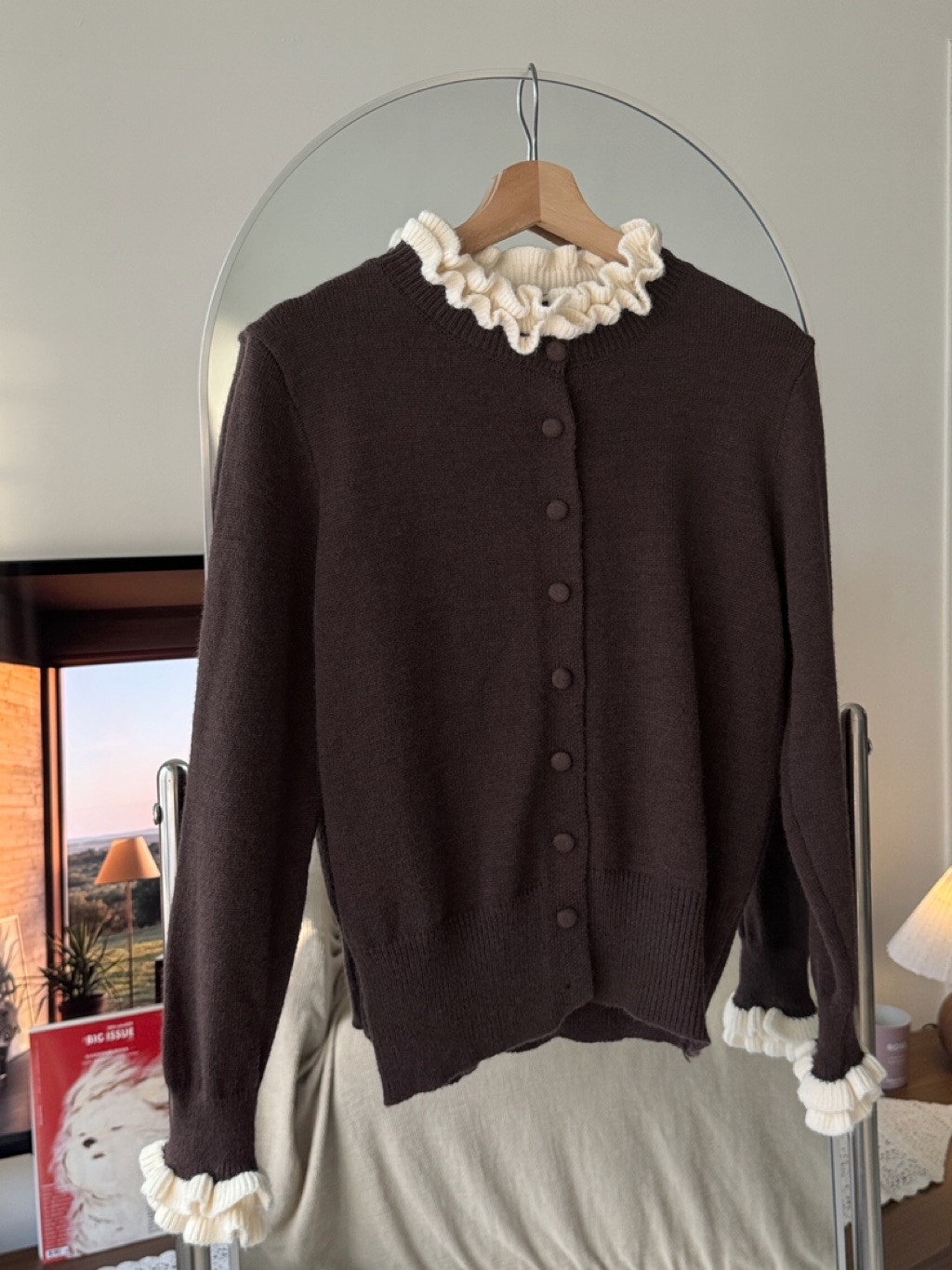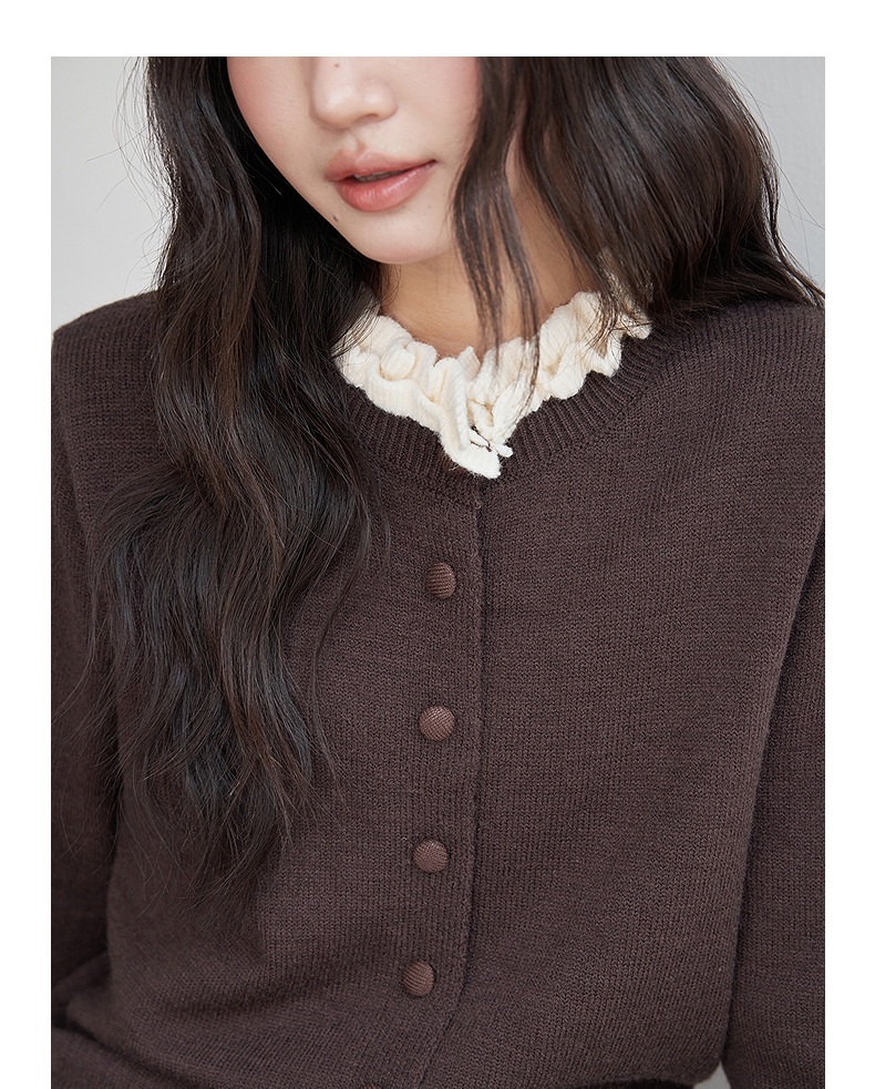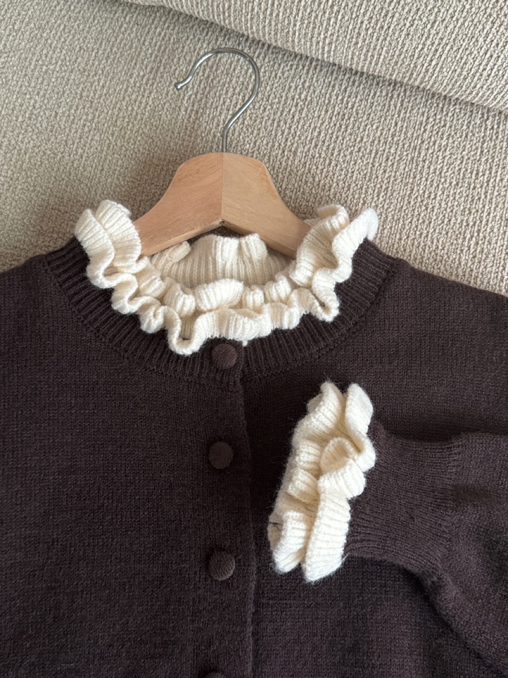 Secret-甜美蛋糕花邊針織開襟毛衣(2colors)