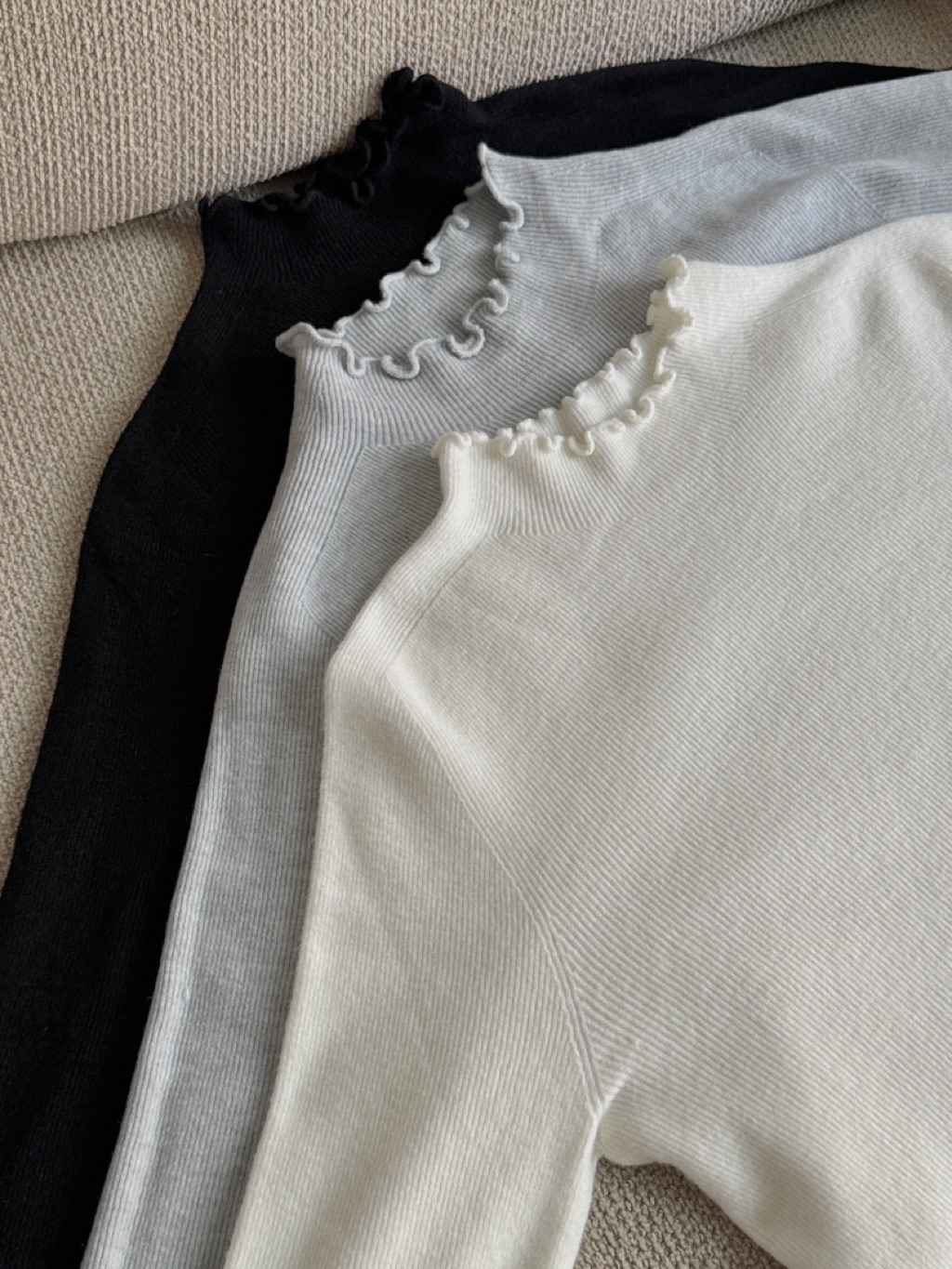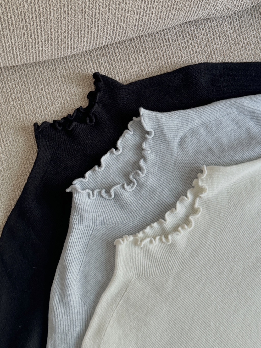 Secret-奶油花邊「零縫線」羊毛半高領打底(木耳邊)(3colors)
